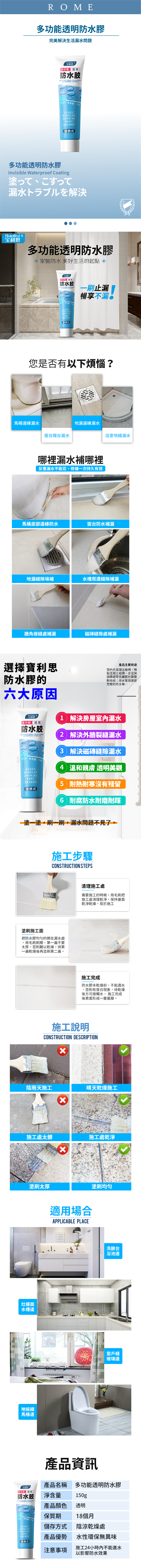 ● 居家防水必備,適用多種材質,水泥,磁磚,地板