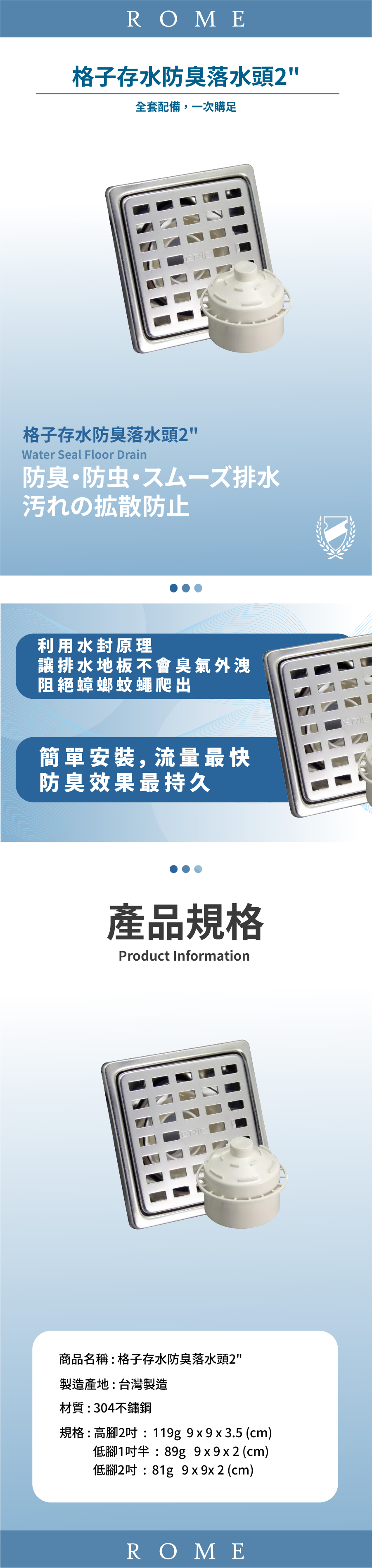 ● 阻隔臭氣、防止蚊蟲、蟑螂、排水順暢