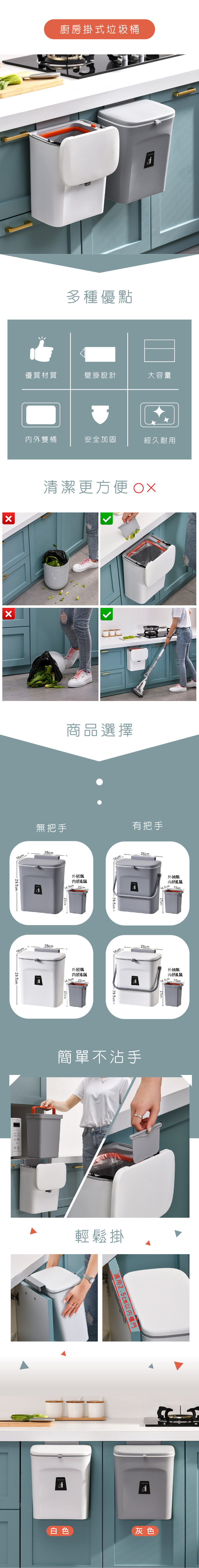 免彎腰壁掛式滑蓋垃圾桶,門背式懸掛設計,適用於2.5cm內門寬