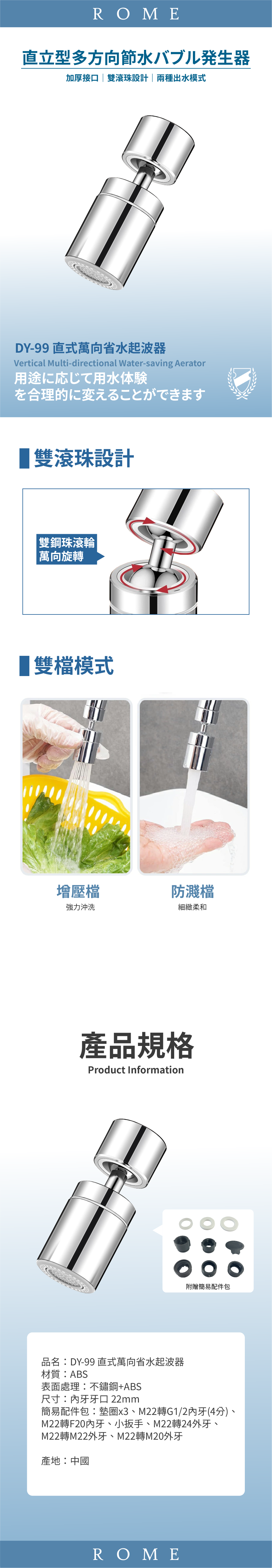 ● 雙滾珠設計,萬向旋轉,靈活調整水流方向