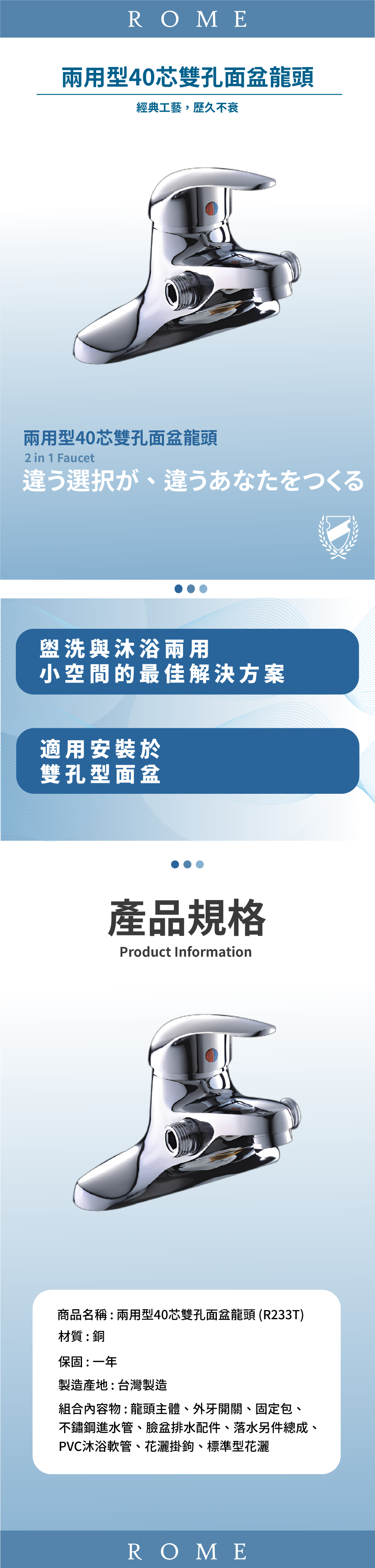 ● 適用安裝於雙孔型面盆