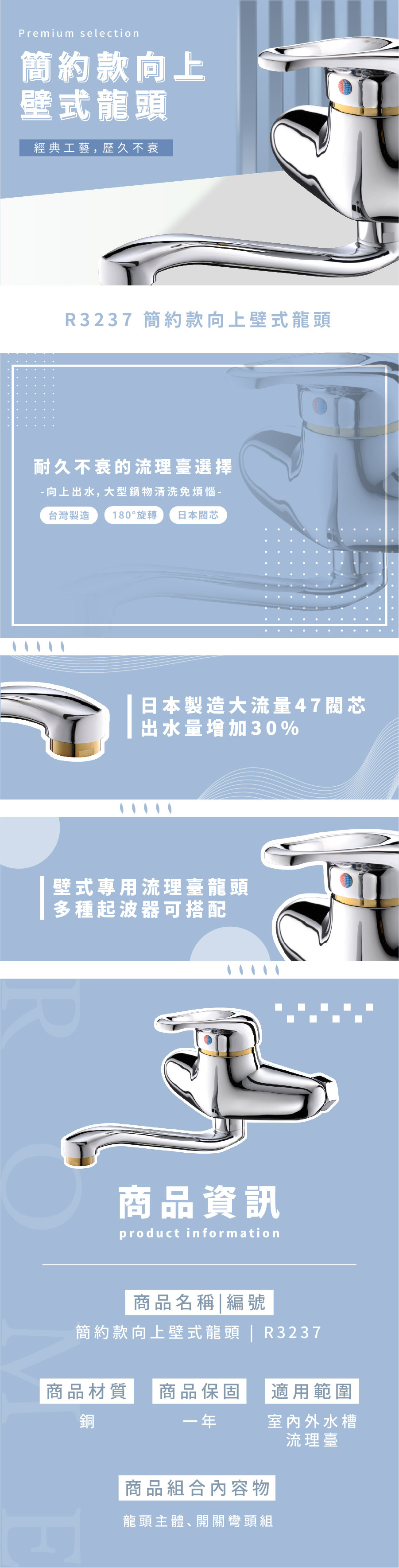 ● 流理臺壁式專用款,向上出水讓你增加清洗高度,大型鍋物免煩惱