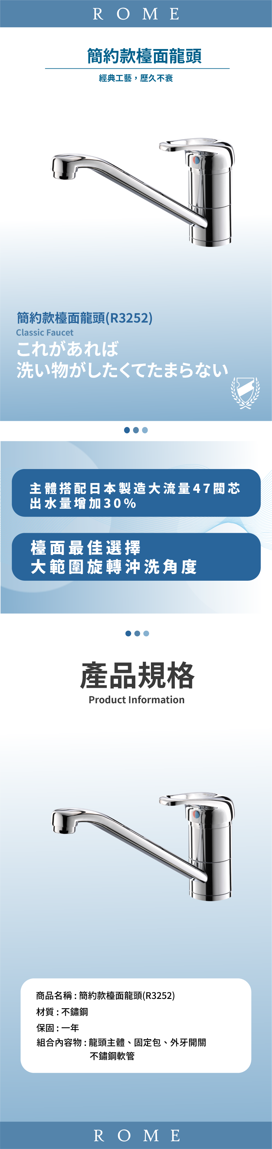組合內容物:龍頭主體、固定包、外牙開關、不鏽鋼軟管