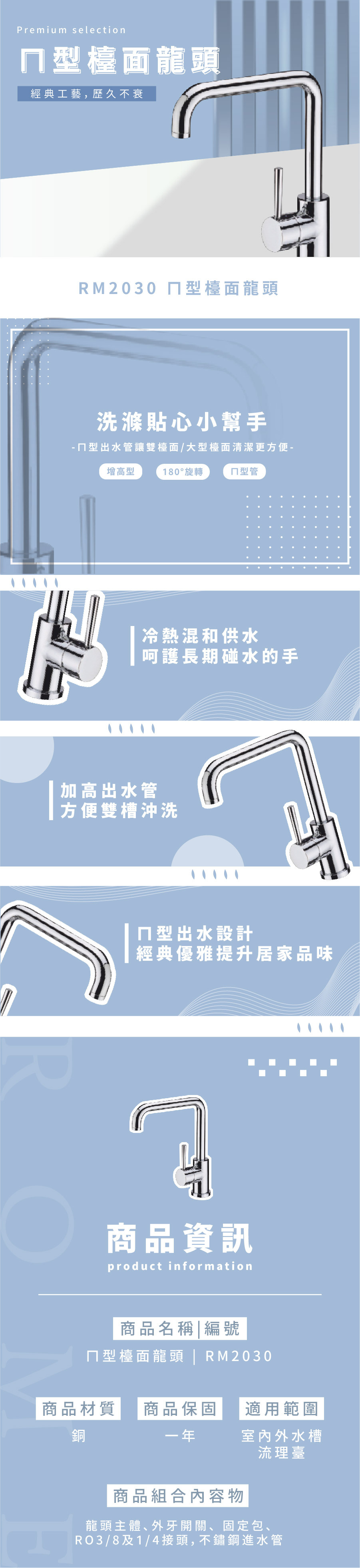 組合內容物:龍頭主體、外牙開關、 固定包、RO3/8及1/4接頭,不鏽鋼進水管