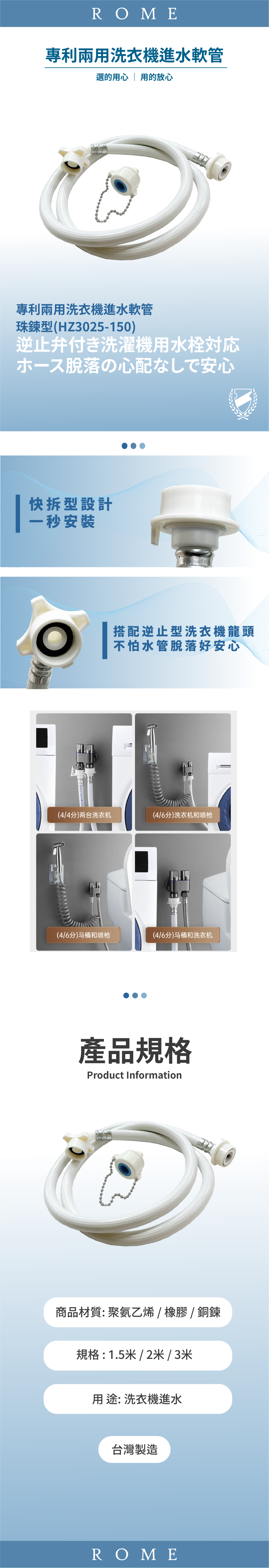 專利兩用洗衣機進水軟管 珠鍊型(HZ3025-150)