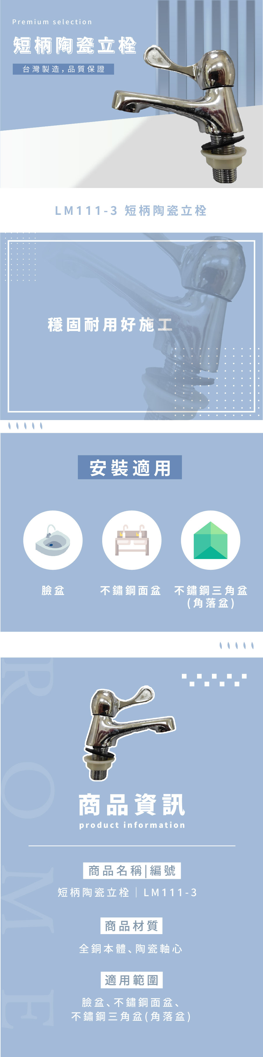 ● 適用於臉盆,不鏽鋼面盆,不鏽鋼三角盆(角落盆)