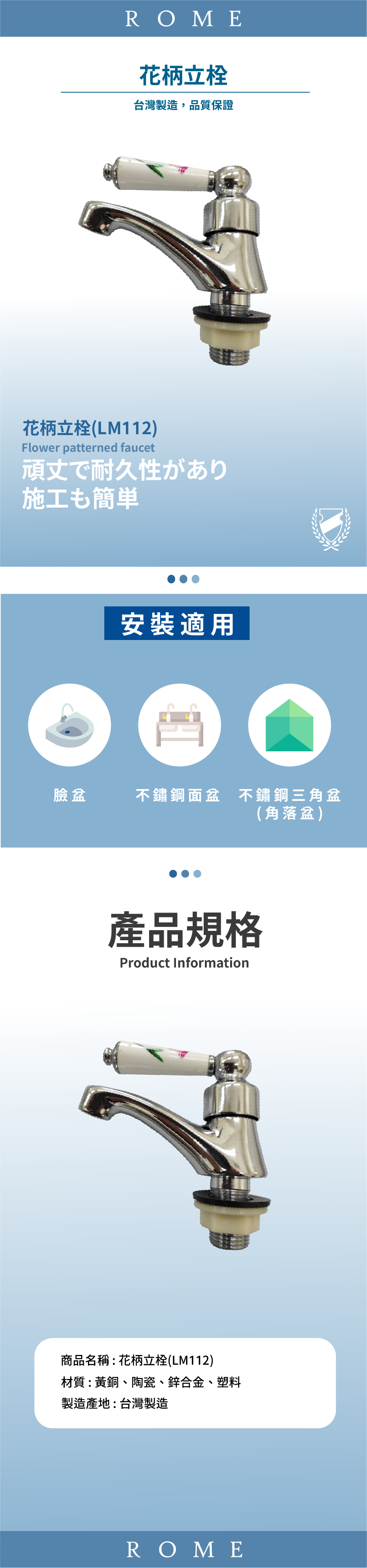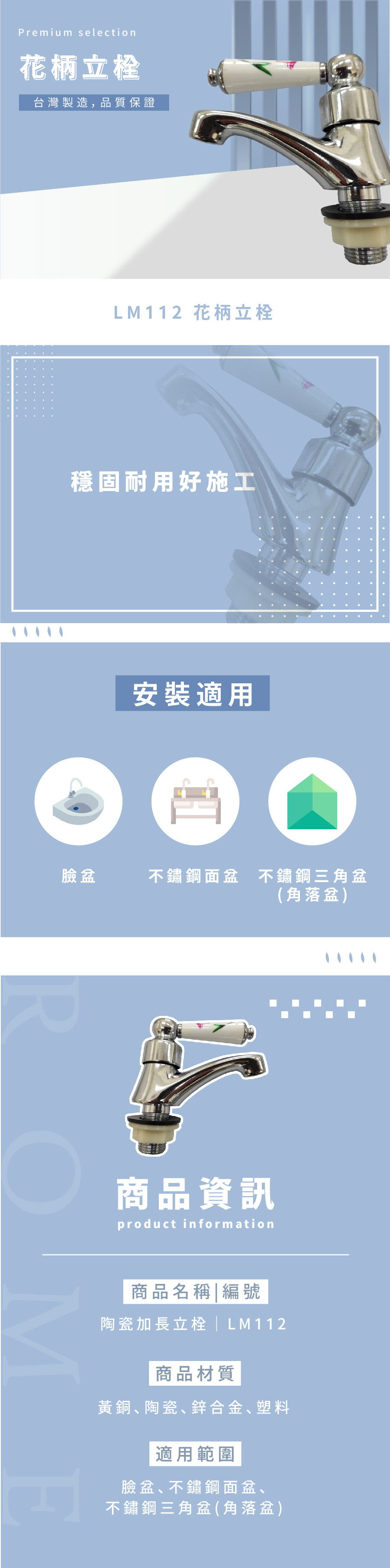 ● 適用於臉盆,不鏽鋼面盆,不鏽鋼三角盆(角落盆)