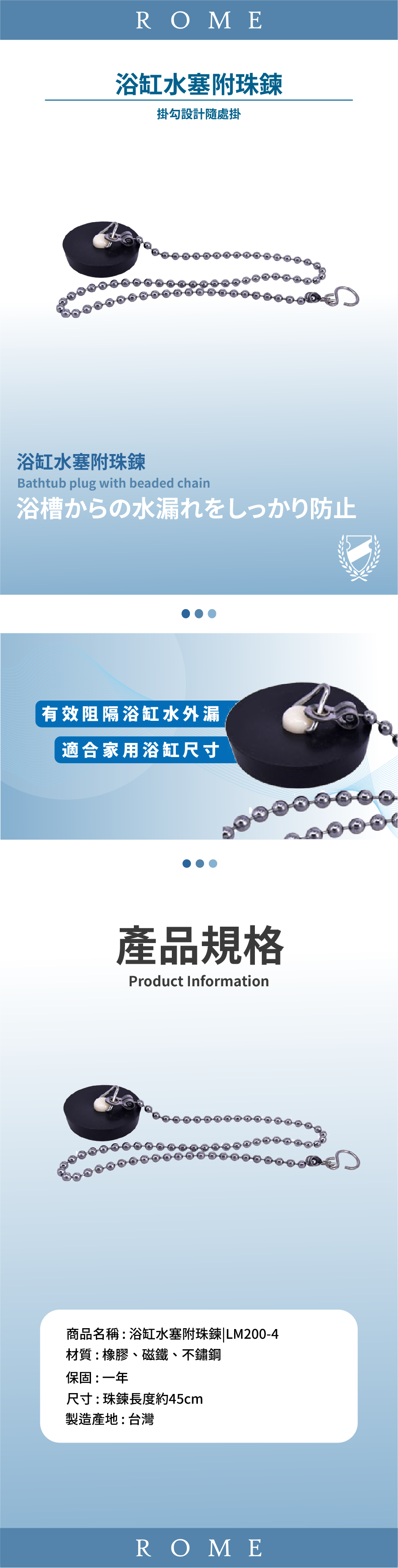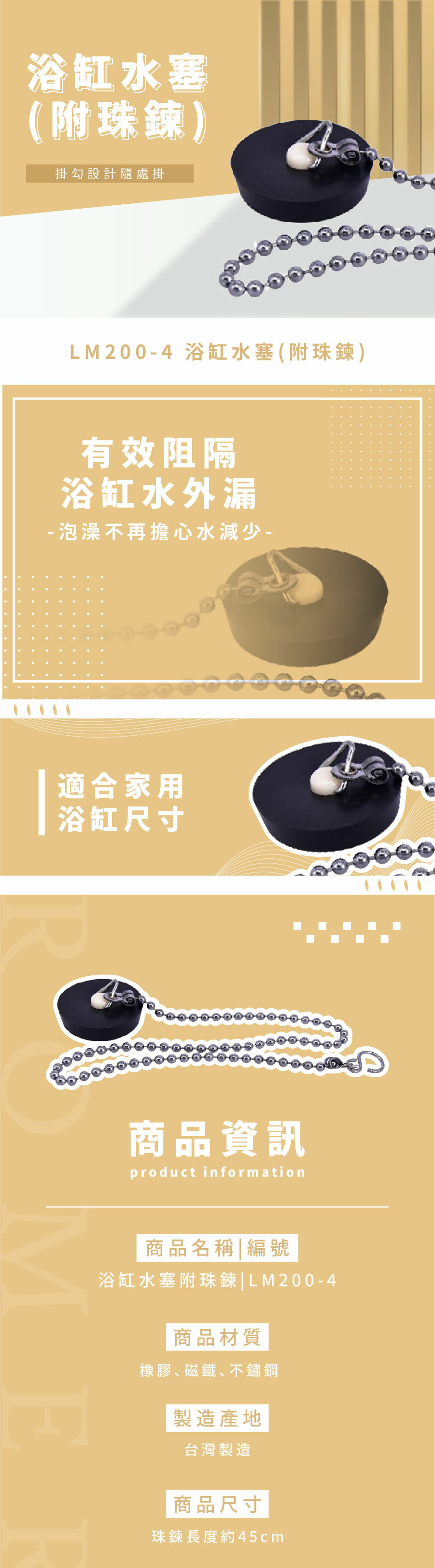 ● 使用便利,有效阻隔浴缸排水