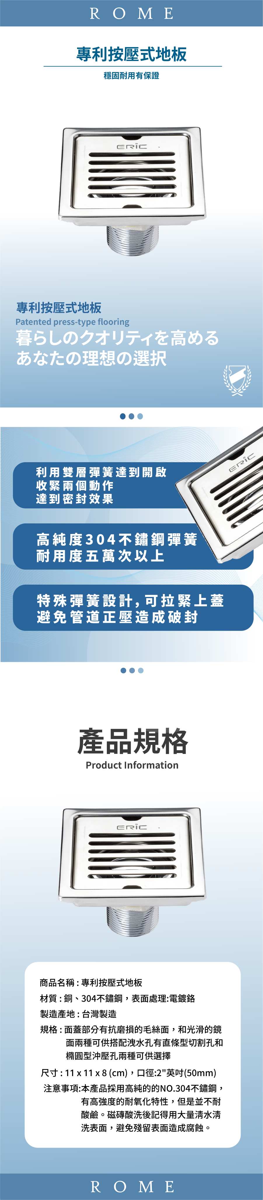 ● 高純度304不鏽鋼彈簧,耐用度五萬次以上