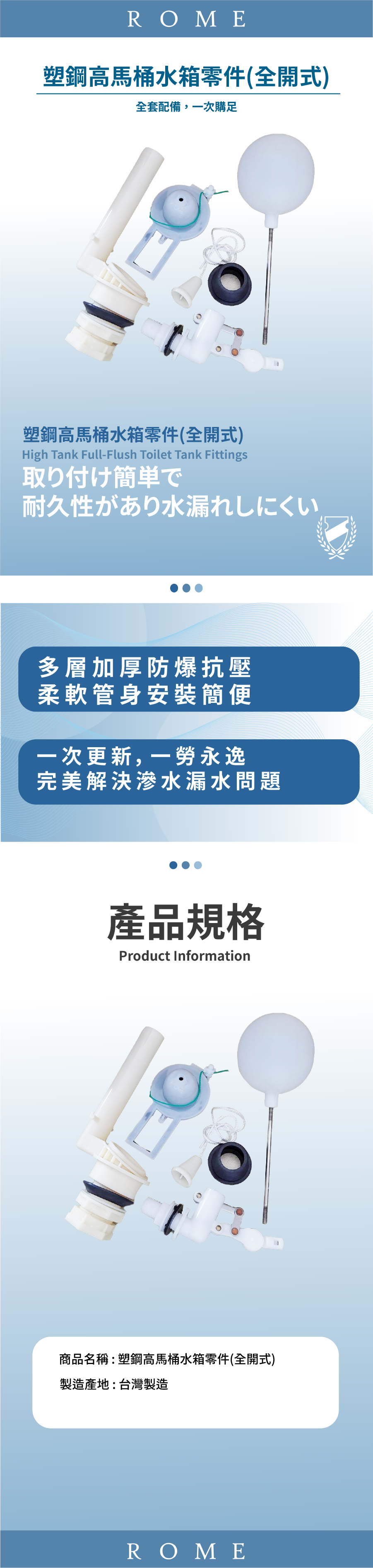 塑鋼高馬桶水箱零件(全開式)(TC3309-4)