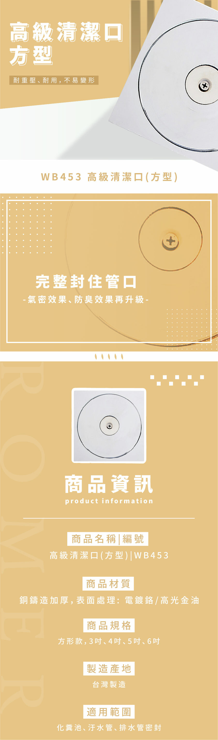 ● 氣密效果加,黃銅鑄造避免沼氣鏽蝕,完整封住管口,防臭效果佳