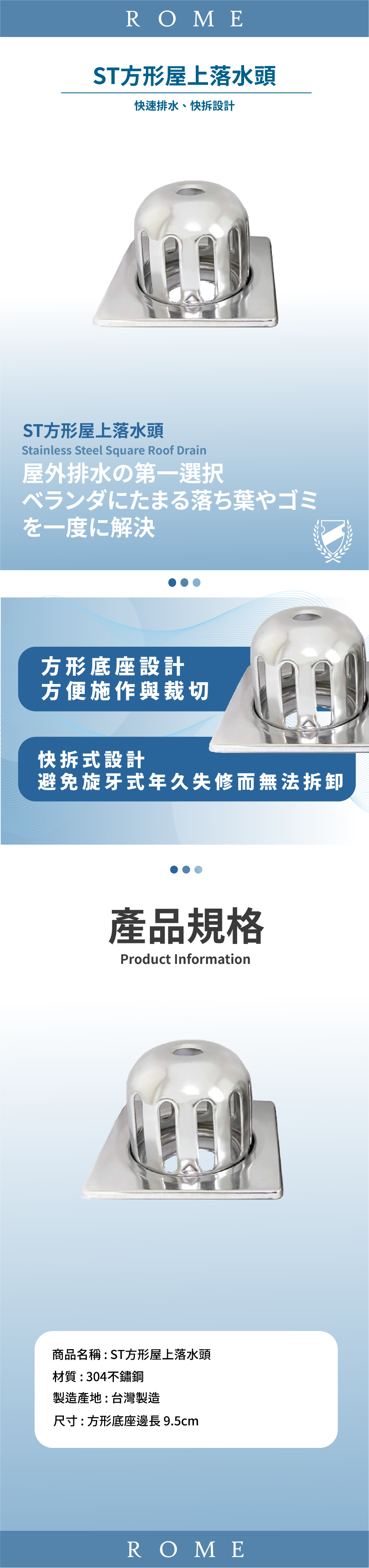 ● 排水快速、輕鬆拆卸、方便清理屋頂落葉與雜物