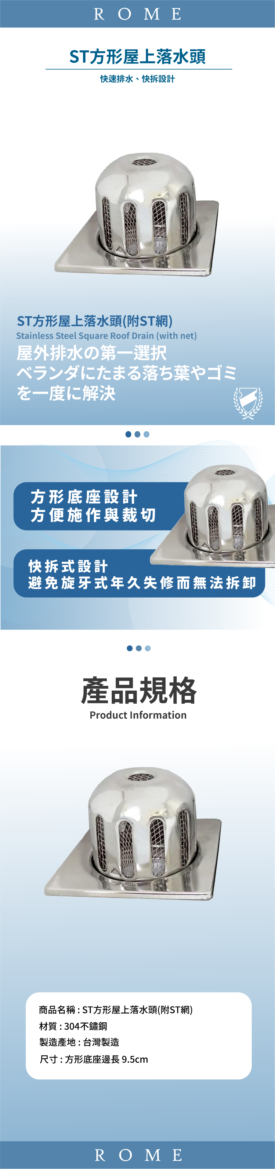● 排水快速、輕鬆拆卸、方便清理屋頂落葉與雜物