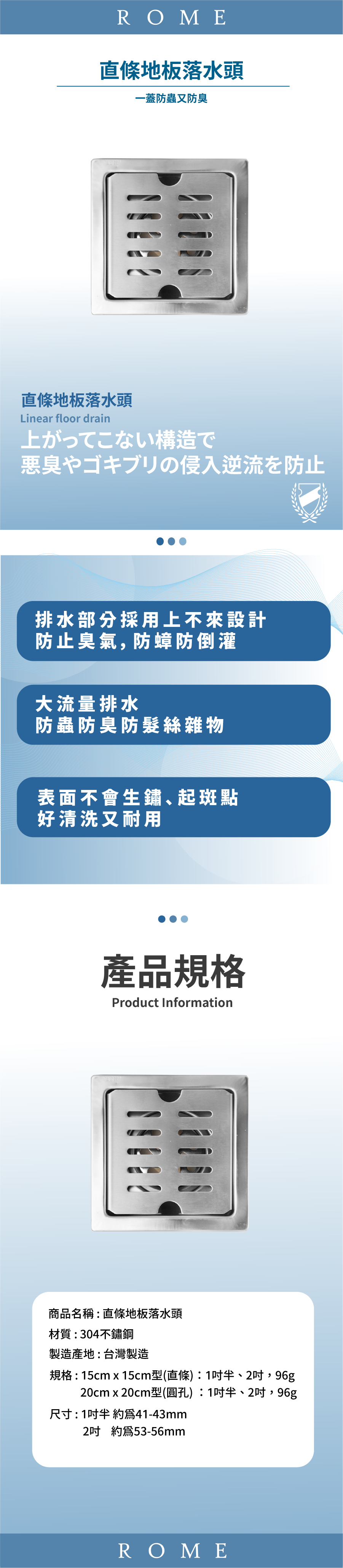 ● 大流量排水、防蟲防臭、防髮絲雜物