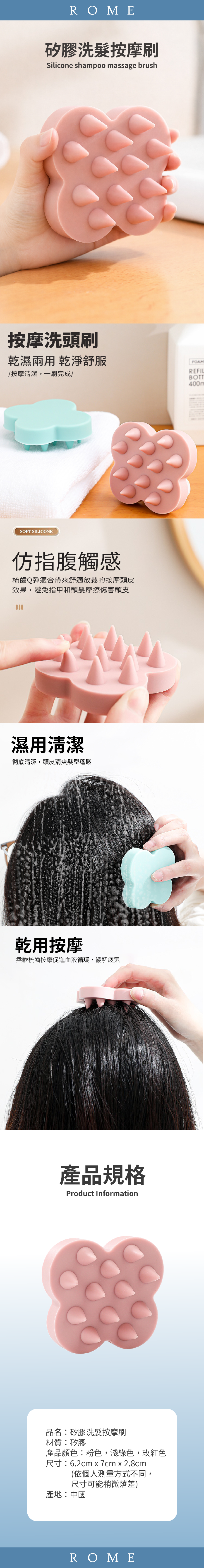 ● 柔軟梳齒,仿指腹觸感,溫和按摩頭皮