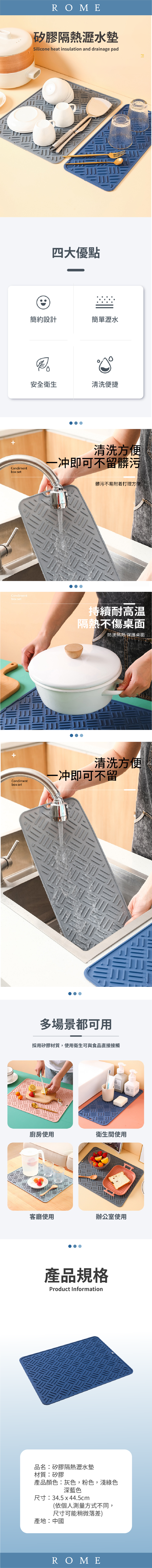 ● 多功能使用,可作瀝水墊、隔熱墊或鍋墊